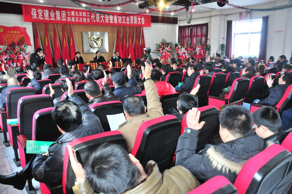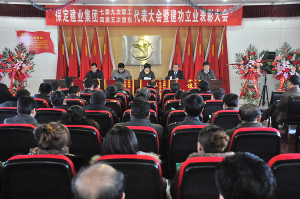 大会在庄严的国歌声中拉开了序幕,首先由集团公司副总经理邸京朝做《二零一一年度工作总结(草案)》,总会计师于广志做《二零一一年度财务工作报告》,监事会主席闫双彦做《二零一一年度财务审核报告》,总经济师李莉做《二零一一年工作安排意见的报告(草案)》,工会主席黄春玲做《二零一一年度职代会工作总结及二零一二年度工作安排报告(草案)》。随后全体与会代表对上述报告进行举手表决,均全票通过。随后由集团下属分公司经理代表与集团公司签订了2012年经济生产责任状。会后,集团公司董事长兼党委书记张兰柱同志做重要讲话,总结了集团公司在二零一一年工作中的经验与不足,激励广大职工、股东代表在新的一年里为企业的快速发展继续作好排头兵、发挥表率作用,与广大员工一起为集团公司贡献力量。